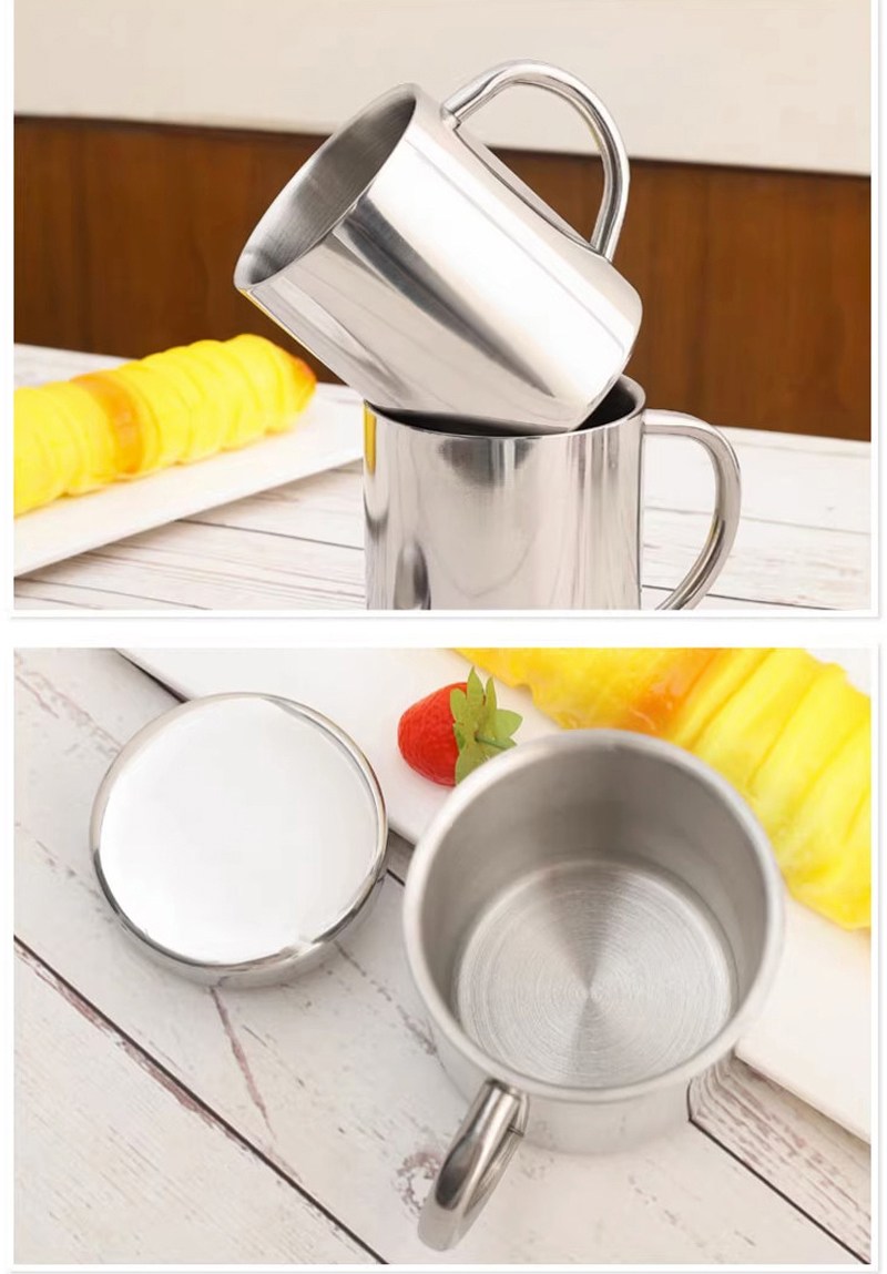 PUSH!餐具用品防摔304不鏽鋼杯子兒童不鏽鋼水杯帶手柄口杯286ml(帶蓋款)E127-1