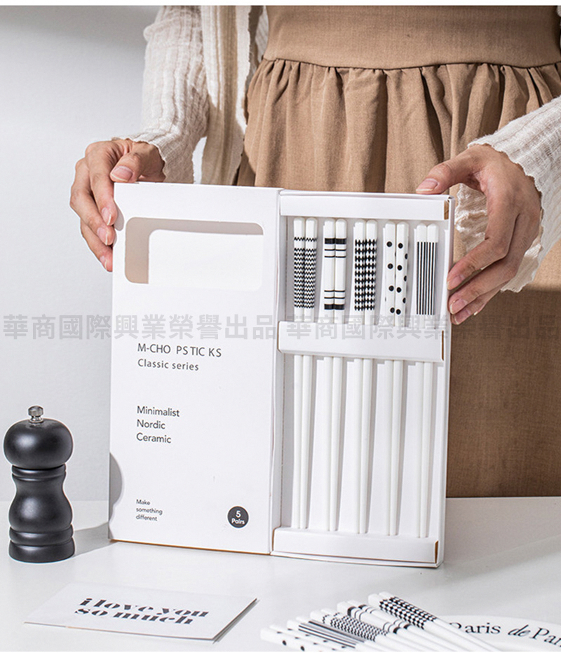 【媽媽咪呀】5雙禮盒組 馬卡龍拼色陶瓷筷子(環保筷 FDA台灣檢驗合格)馬卡龍筷子-5雙禮盒組x1盒