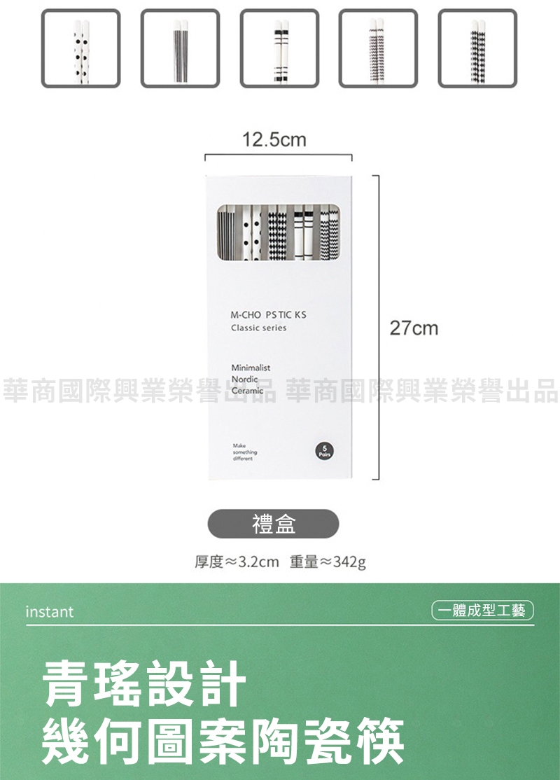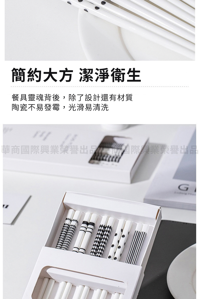 【媽媽咪呀】1組禮盒共5支 黑白赫本風陶瓷湯匙(環保湯匙 湯勺 FDA台灣檢驗合格)5支/禮盒裝x1盒