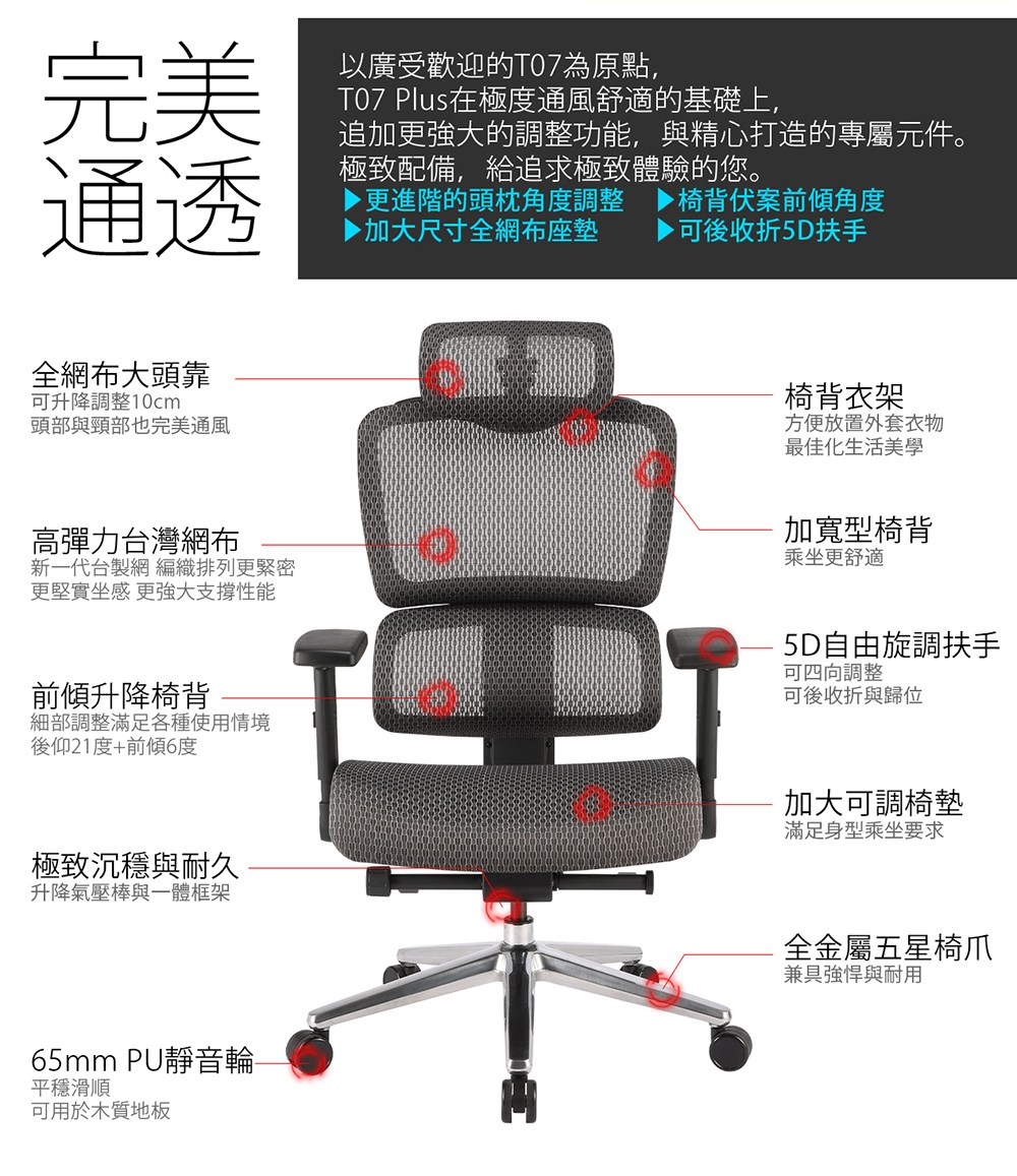 點我下載irocks T07 Plus 人體工學 電腦椅隕石灰