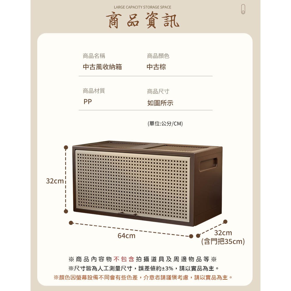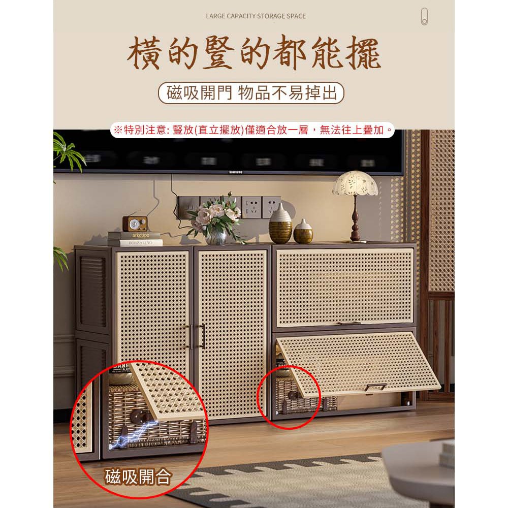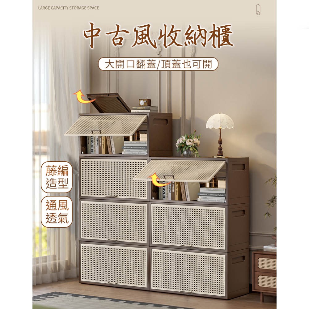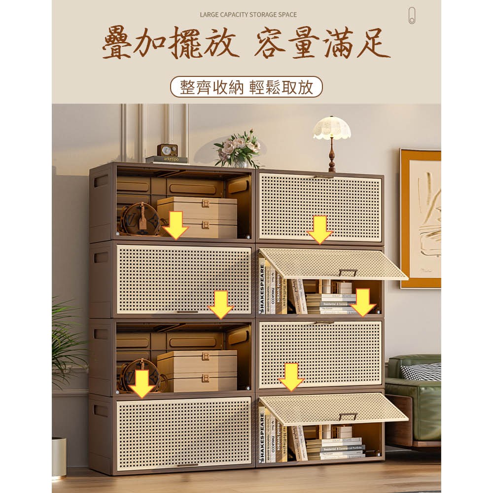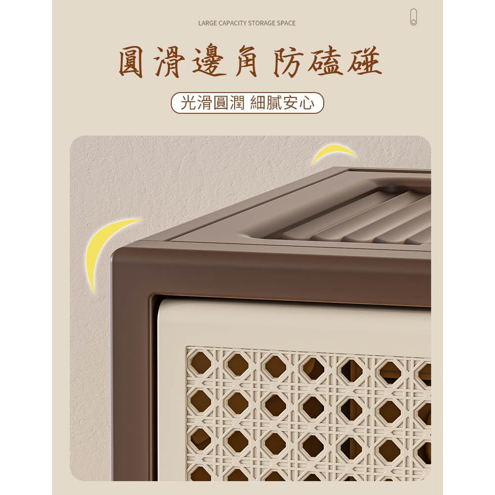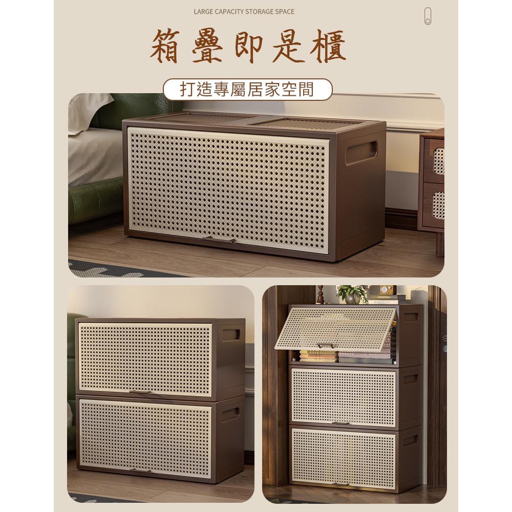 AOTTO 60L藤編造型磁吸上掀收納箱-單層(收納櫃 置物櫃 收納箱 置物箱 櫥中古棕