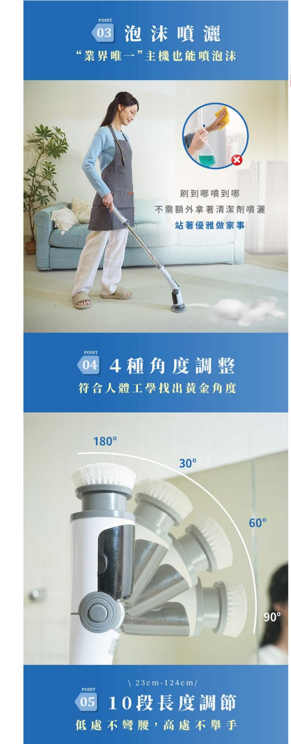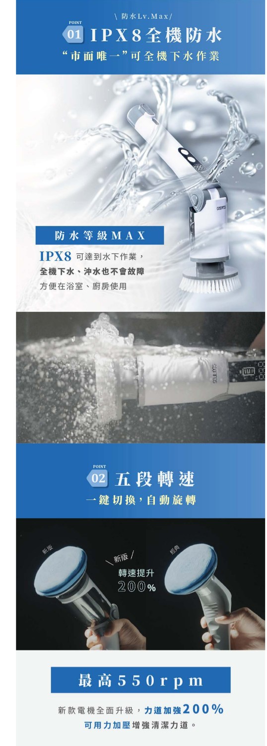 GOOFINDS 「IPX8全防水」電動清潔刷PRO GH203(5段轉速/ 泡沫噴灑/ 刷地板/ 刷浴室)