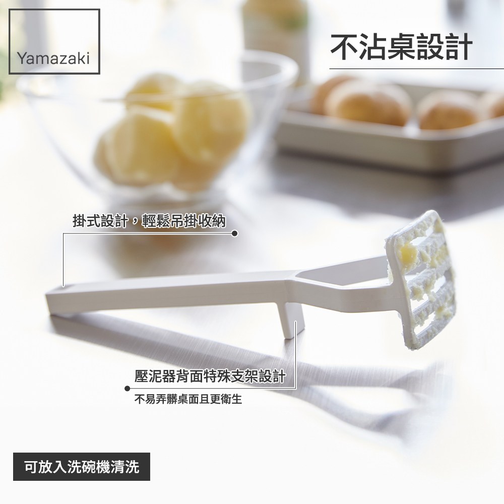 手把自帶支架,放在桌上壓泥器時不必擔心沾到桌面。