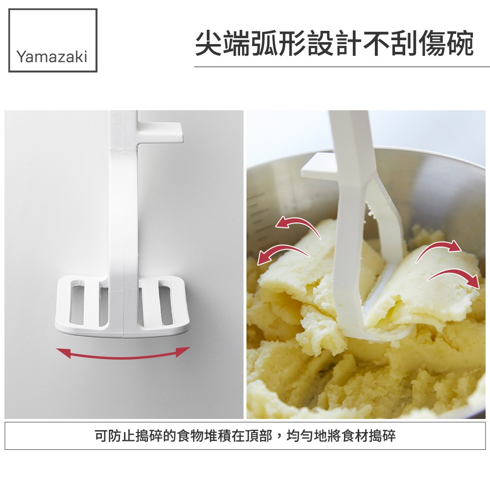 尖端與碗貼合的弧形設計不傷碗,可防止搗碎的食物堆積在頂部,均勻地將食材搗碎。