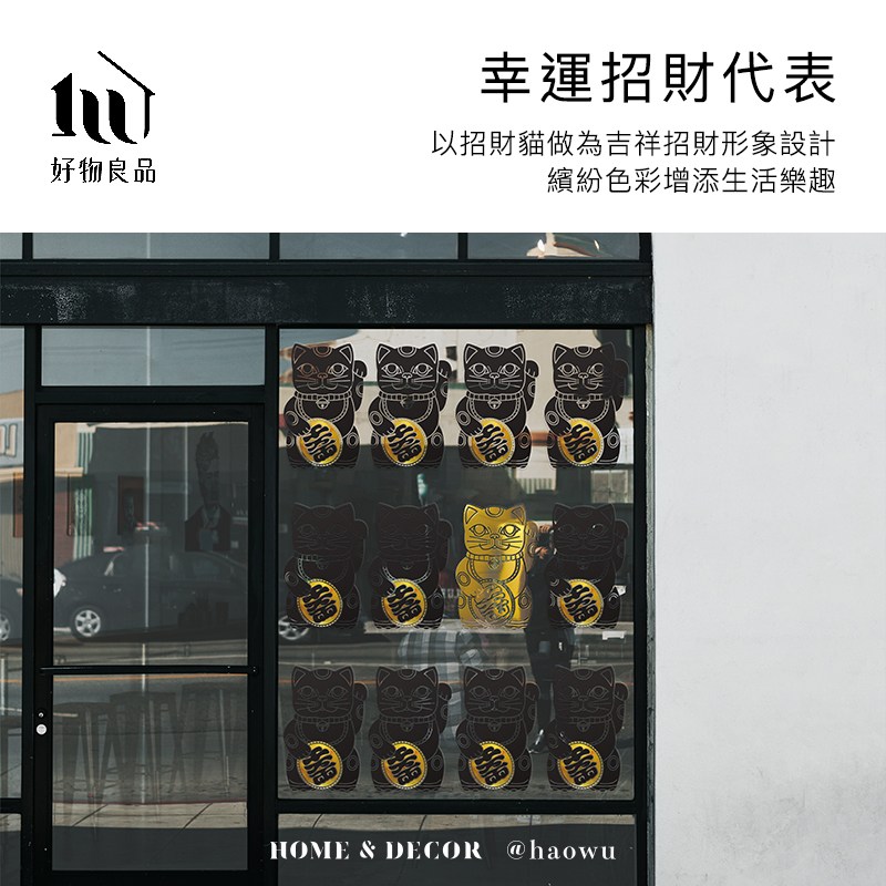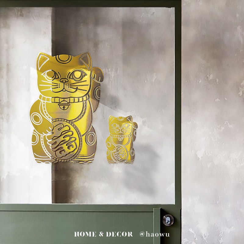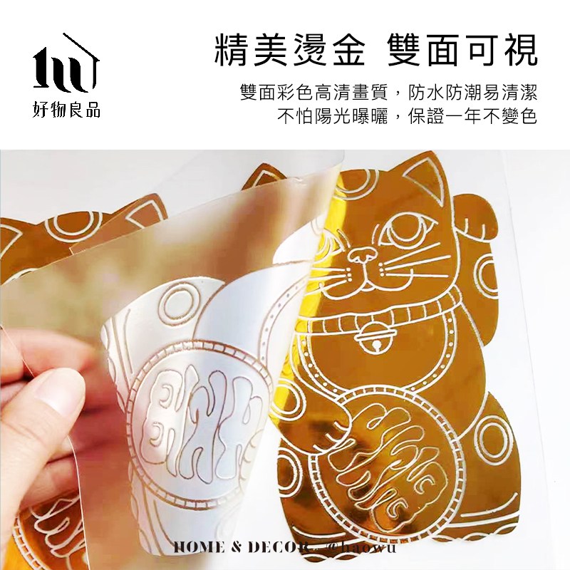 【好物良品】燙金大款_開運招財Lucky Neko靜電貼紙大款-招財納福