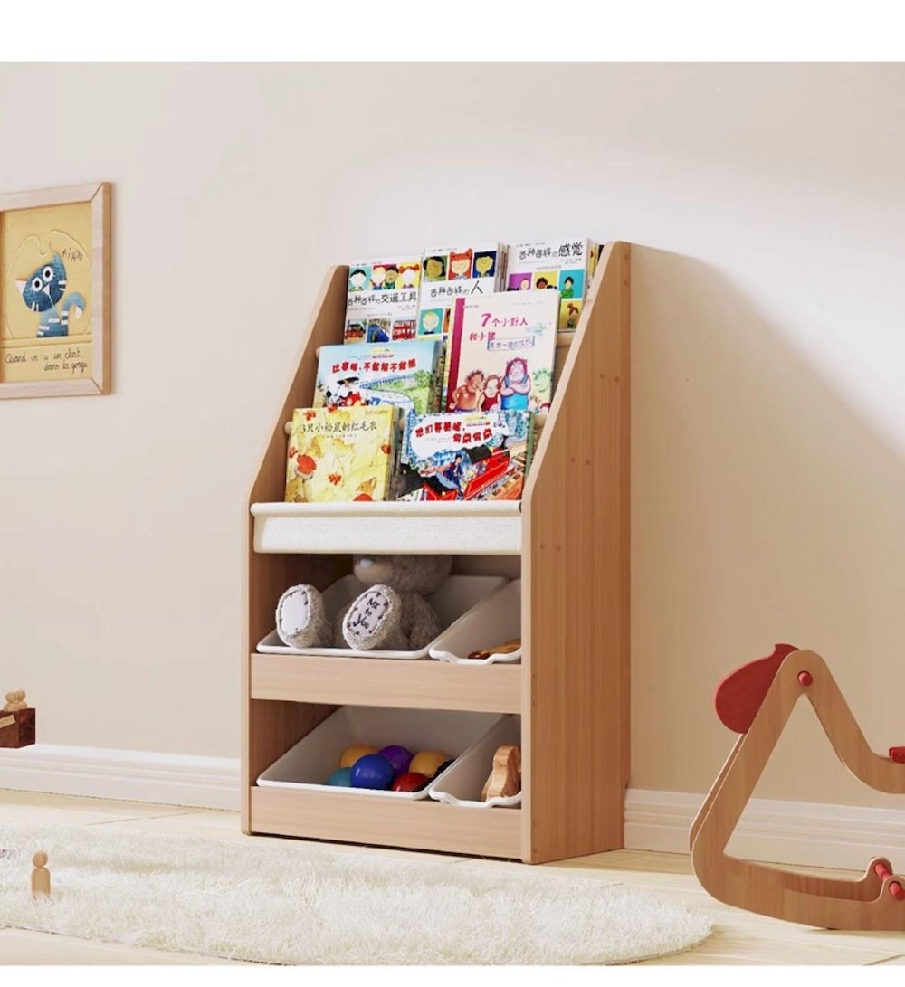 【樂樂】好好繪書架 木質兒童玩具繪本架C款 基礎/三層繪本+PE收納盒一層 長63cm(寶寶閱讀收納架 二合一體 實木落地書架)基礎/三層繪本-C款63cm