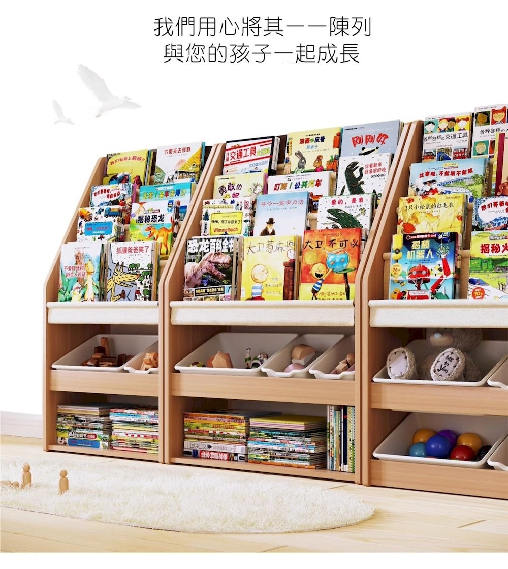 【樂樂】好好繪書架 木質兒童玩具繪本架E款 升級/四層繪本+PE收納盒一層+格子 長63cm(寶寶閱讀收納架 二合一體 實木落地書架)升級/四層繪本-E款63cm