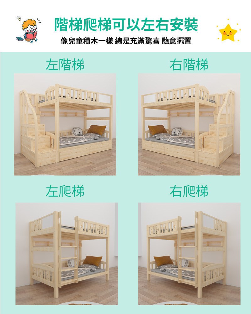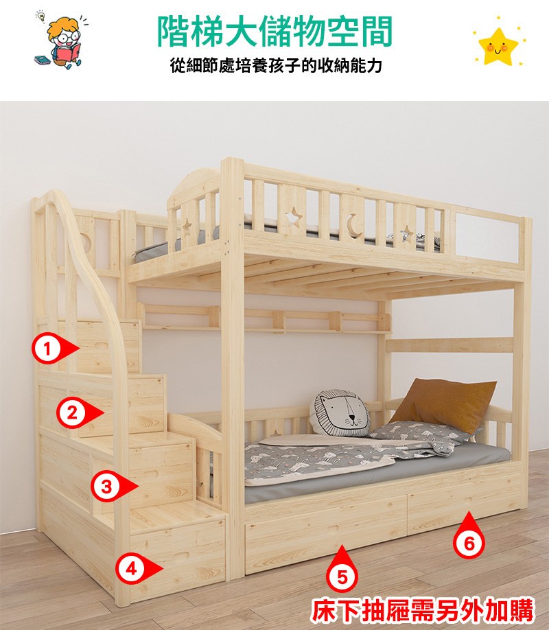 內含商品:上漆-一體同寬 階梯款115床型 上下舖 ( 單人加大)