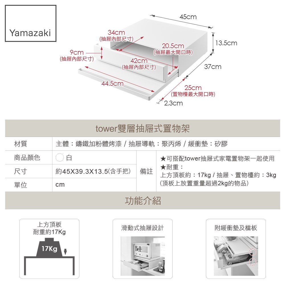電器底下空間不浪費【tower雙層抽屜式置物架】幫你多一個收納空間。