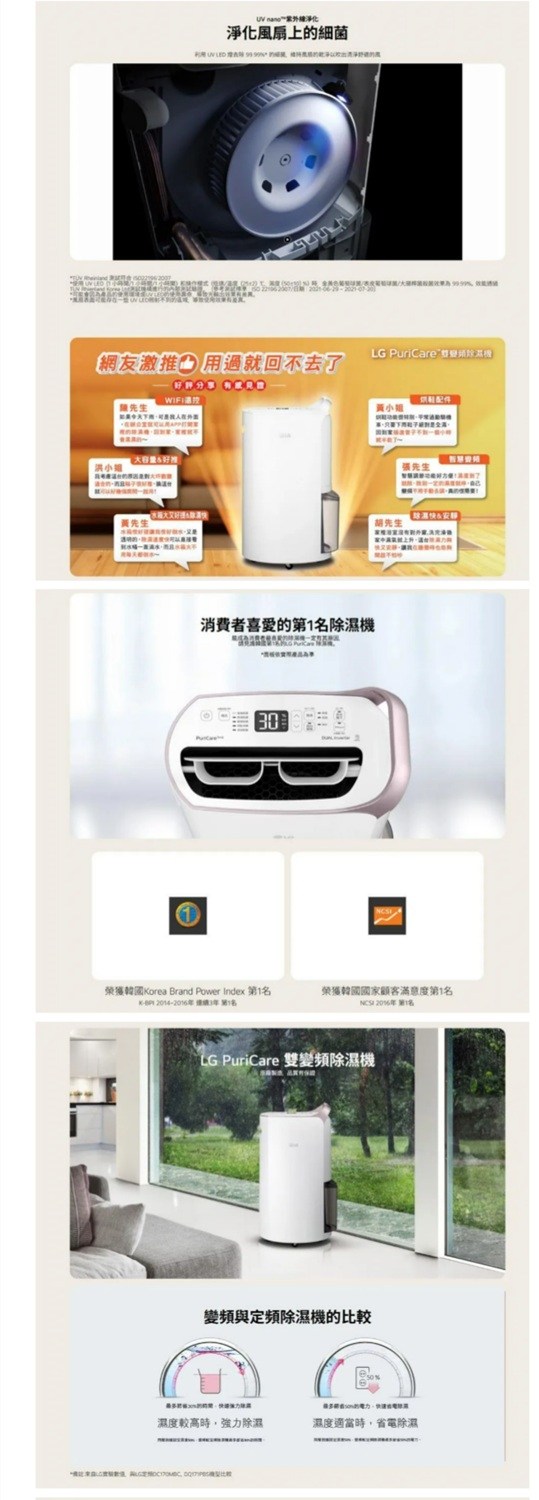 可退稅1200 LG 樂金12公升 一級能效 PuriCare 雙變頻除濕機 DD121QWE0