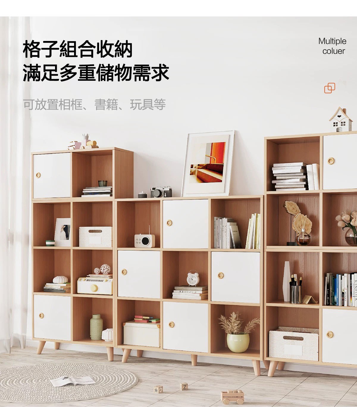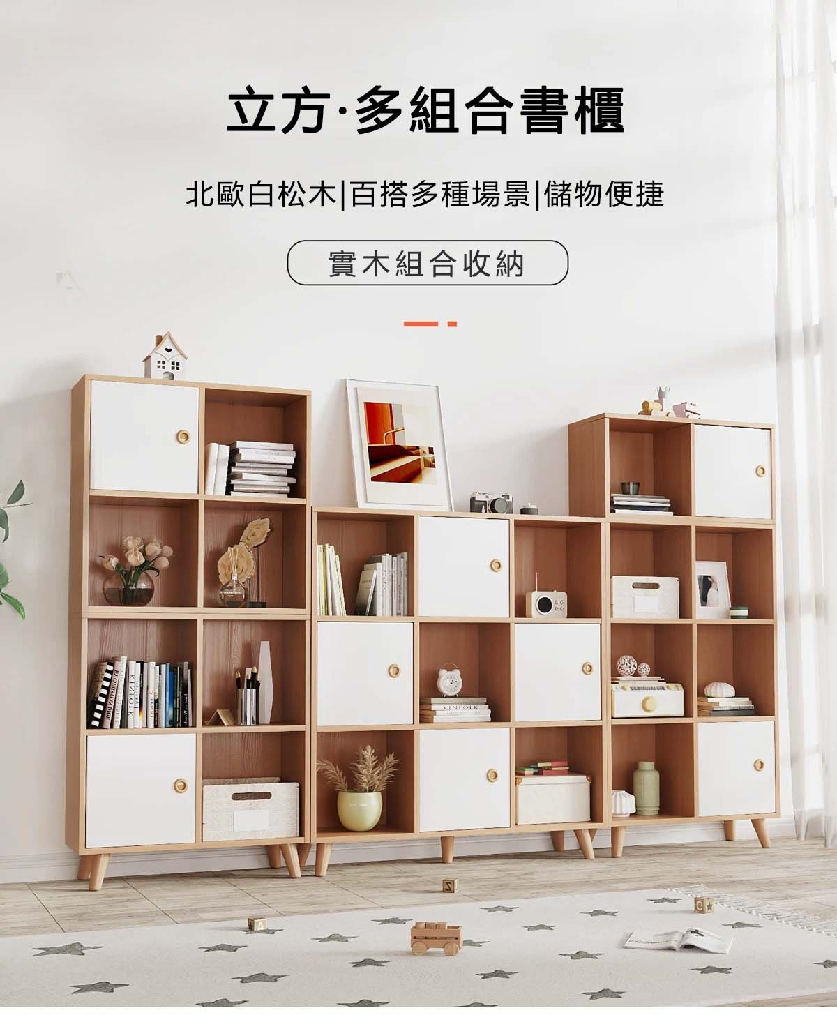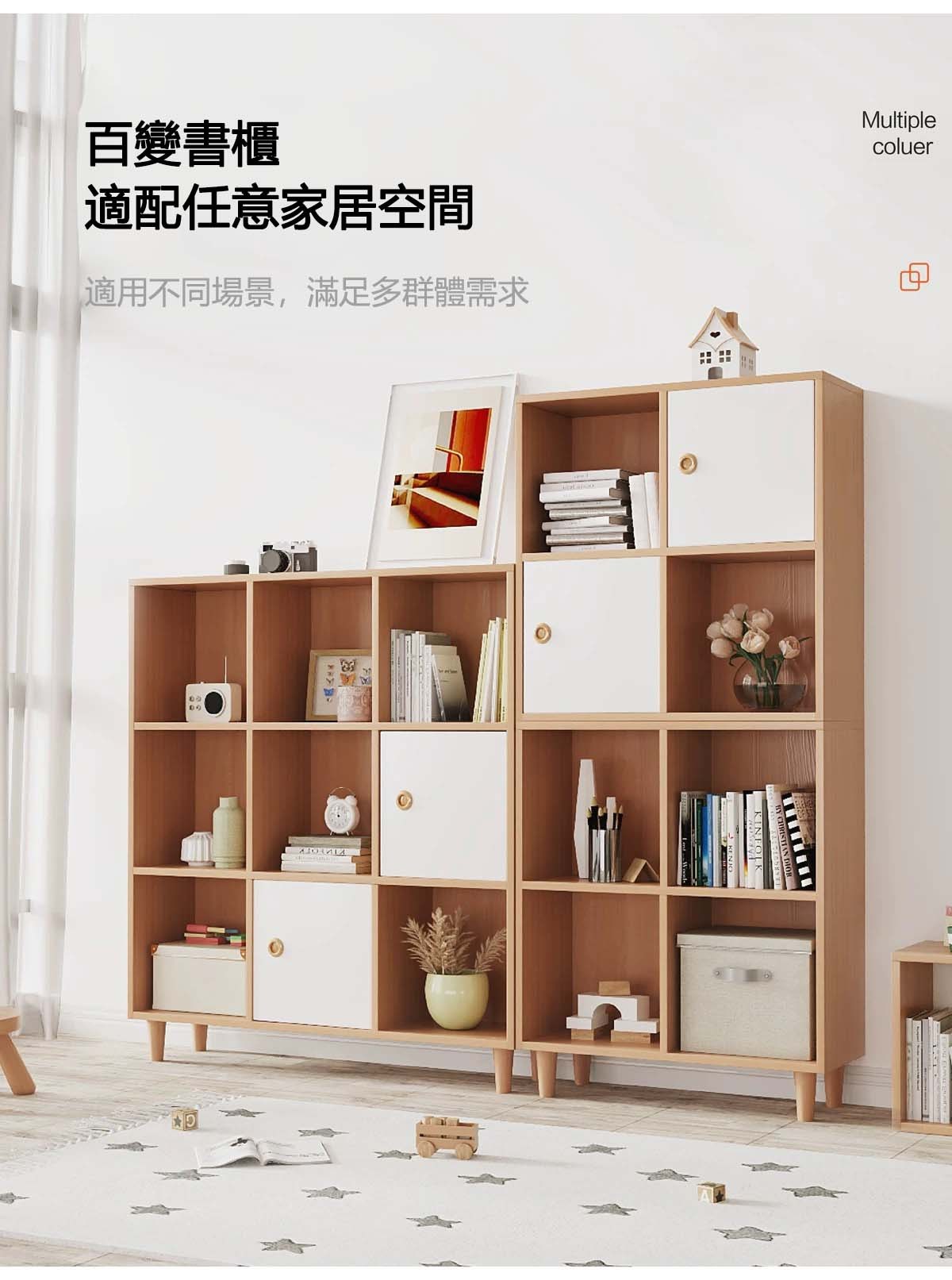 【樂樂】好好Q書架 木質兒童儲物單元格書櫃 三格-帶櫃腳款(實木帶腿書架 自由組合 多格收納)三格-帶櫃腳款