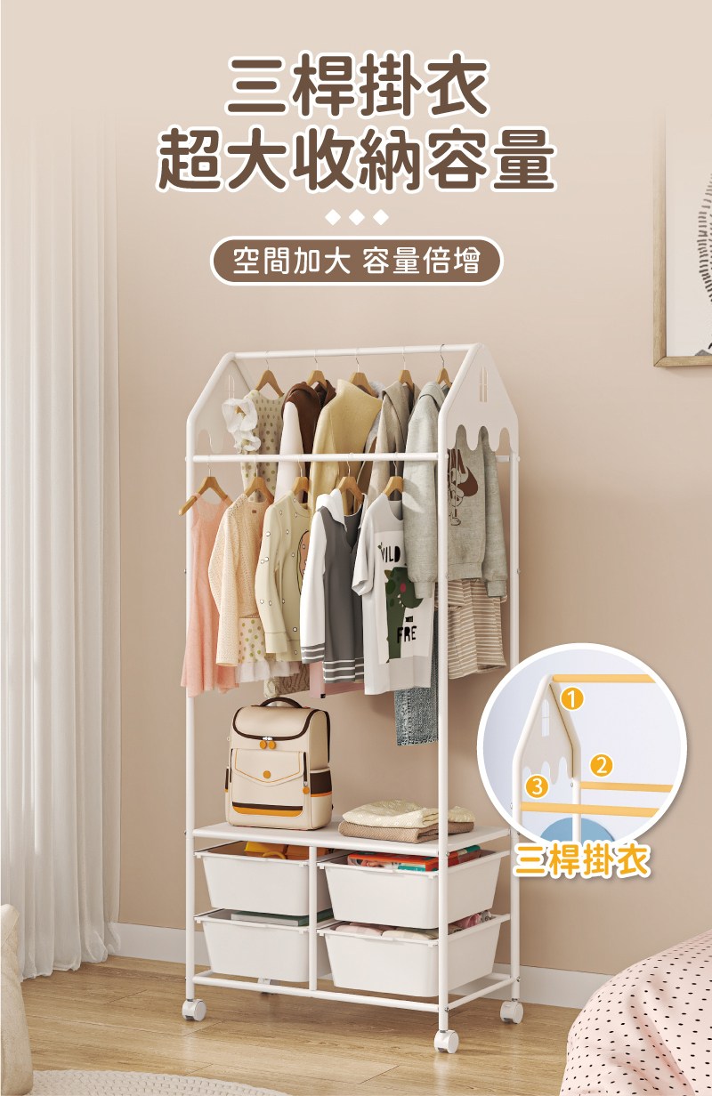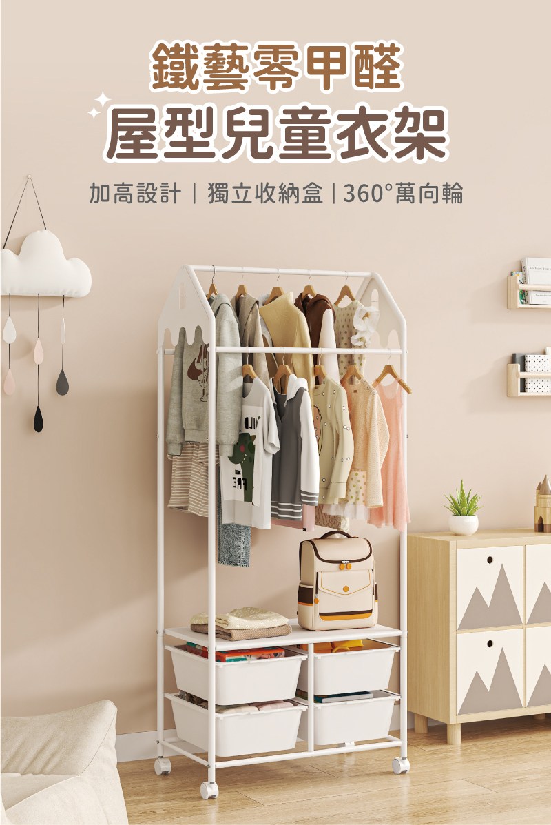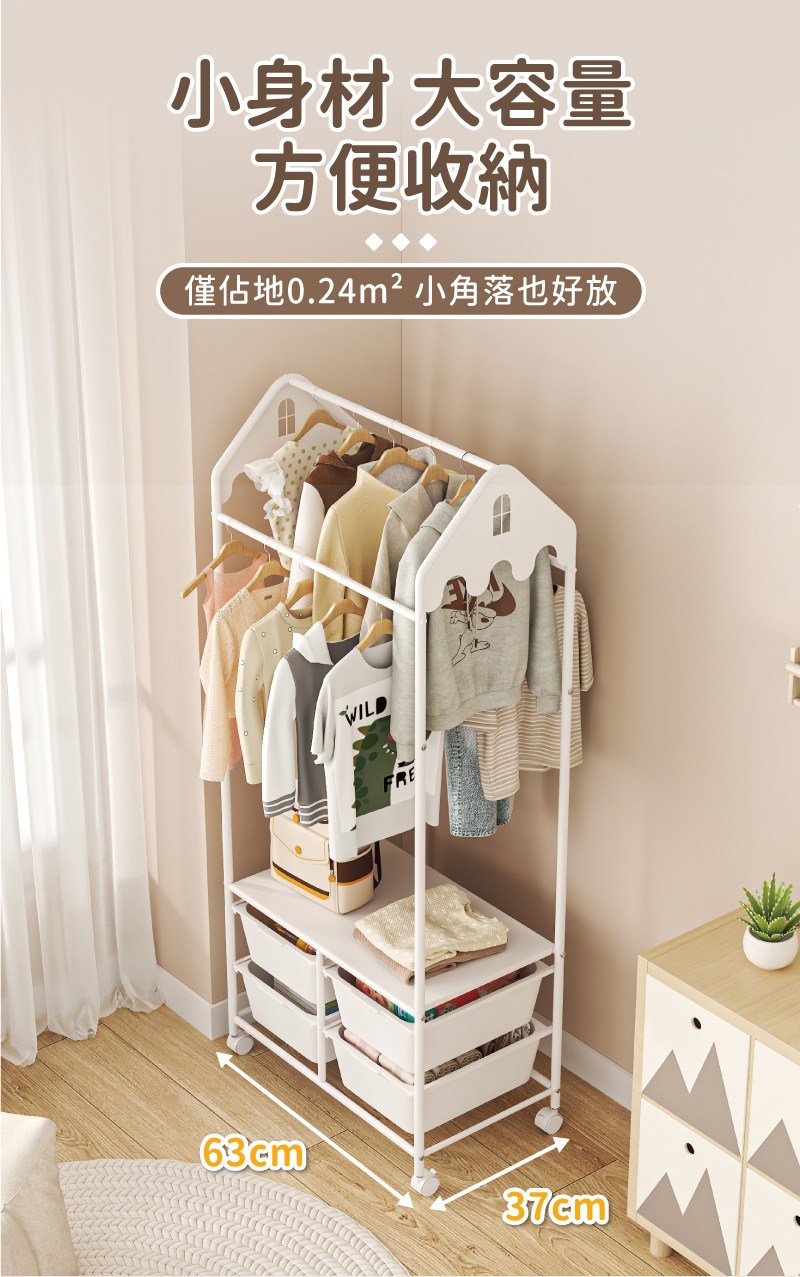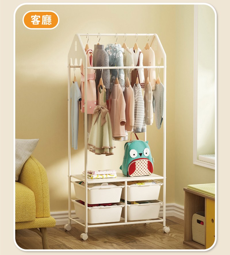 【慢慢家居】可愛屋型兒童掛衣架 鐵藝零甲醛 兒童衣櫃 衣帽架 收納屋型兒童衣架-白色