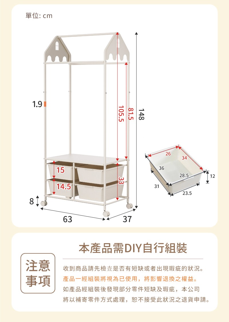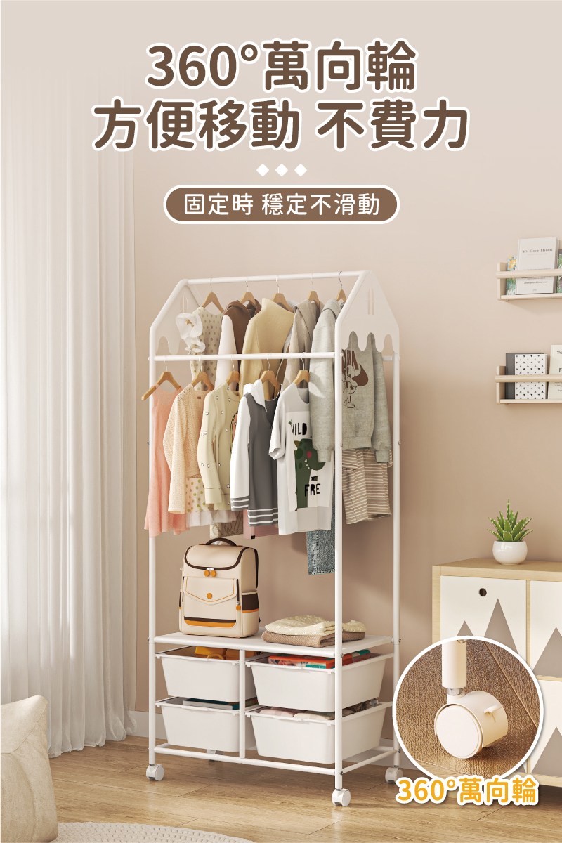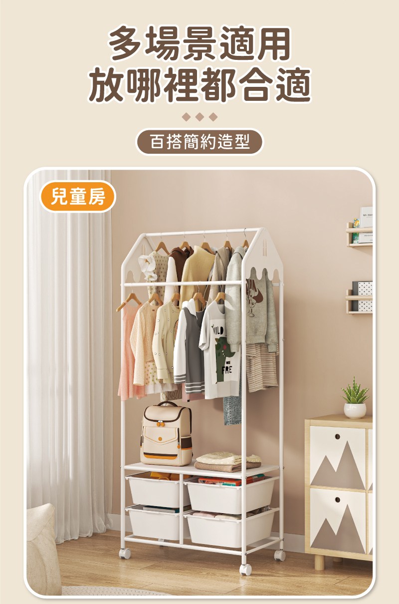 【慢慢家居】可愛屋型兒童掛衣架 鐵藝零甲醛 兒童衣櫃 衣帽架 收納屋型兒童衣架-白色