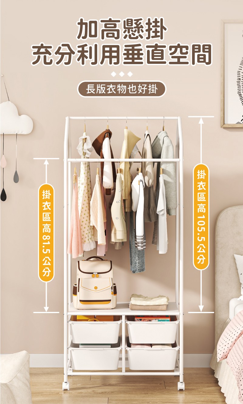【含稅/免運】 可移動晾衣架落地家用掛衣服架奶油風臥室內帶輪置物仙人掌衣帽架