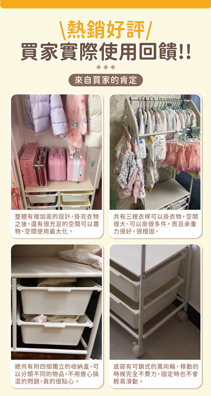 【晴天媽咪】不鏽鋼多功能三桿伸縮曬衣架(附滾輪)