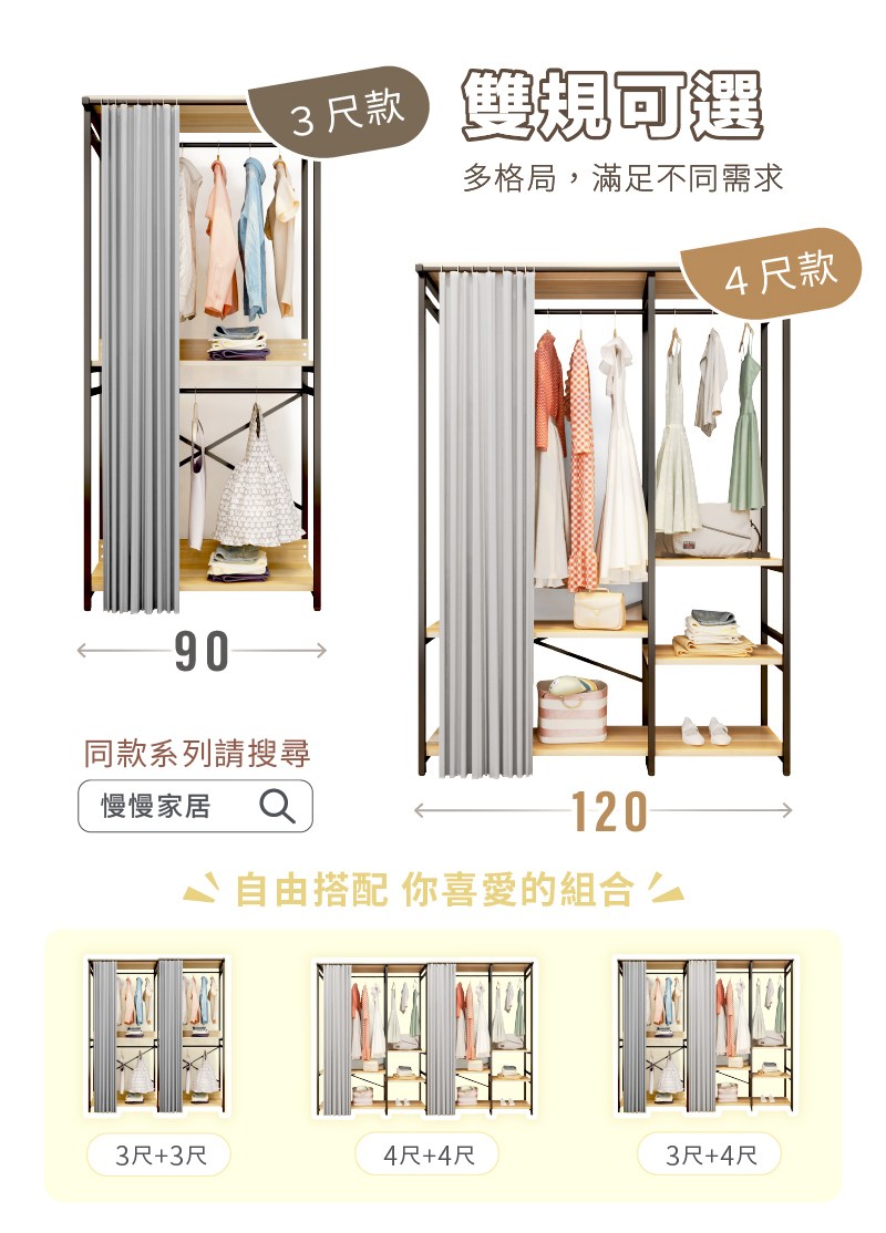 【慢慢家居】現代簡約附廉開放式衣櫃-4尺(W120xD50xH200c4尺開放式衣櫃