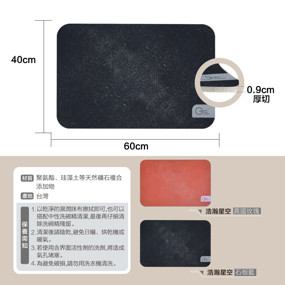 【OGL】頂吸 厚切特舒軟式珪藻土吸水地墊 60x40cm 浩瀚星空藍