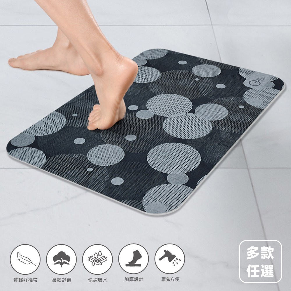 【OGL】頂吸 厚切特舒軟式珪藻土吸水地墊 60x40cm 圓圓不絕藍