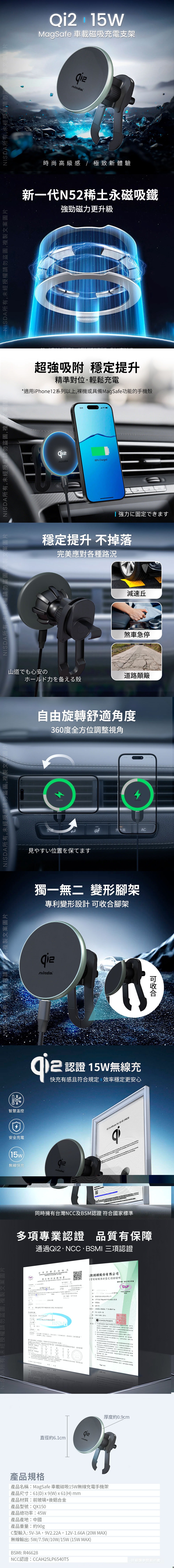 iMag 15W Qi2認證磁吸無線充電車架 iMag 15W Qi2認證磁吸無線充電車架/黑