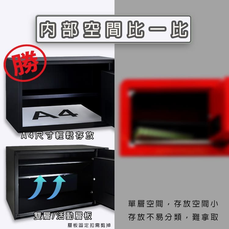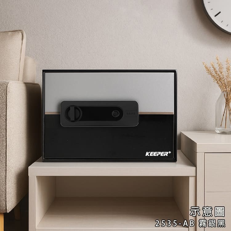 守護者 時尚設計家用保險箱推薦 雙層A4收納空間(指紋/密碼/鑰匙鎖 原廠保2535-AB 霧銀黑