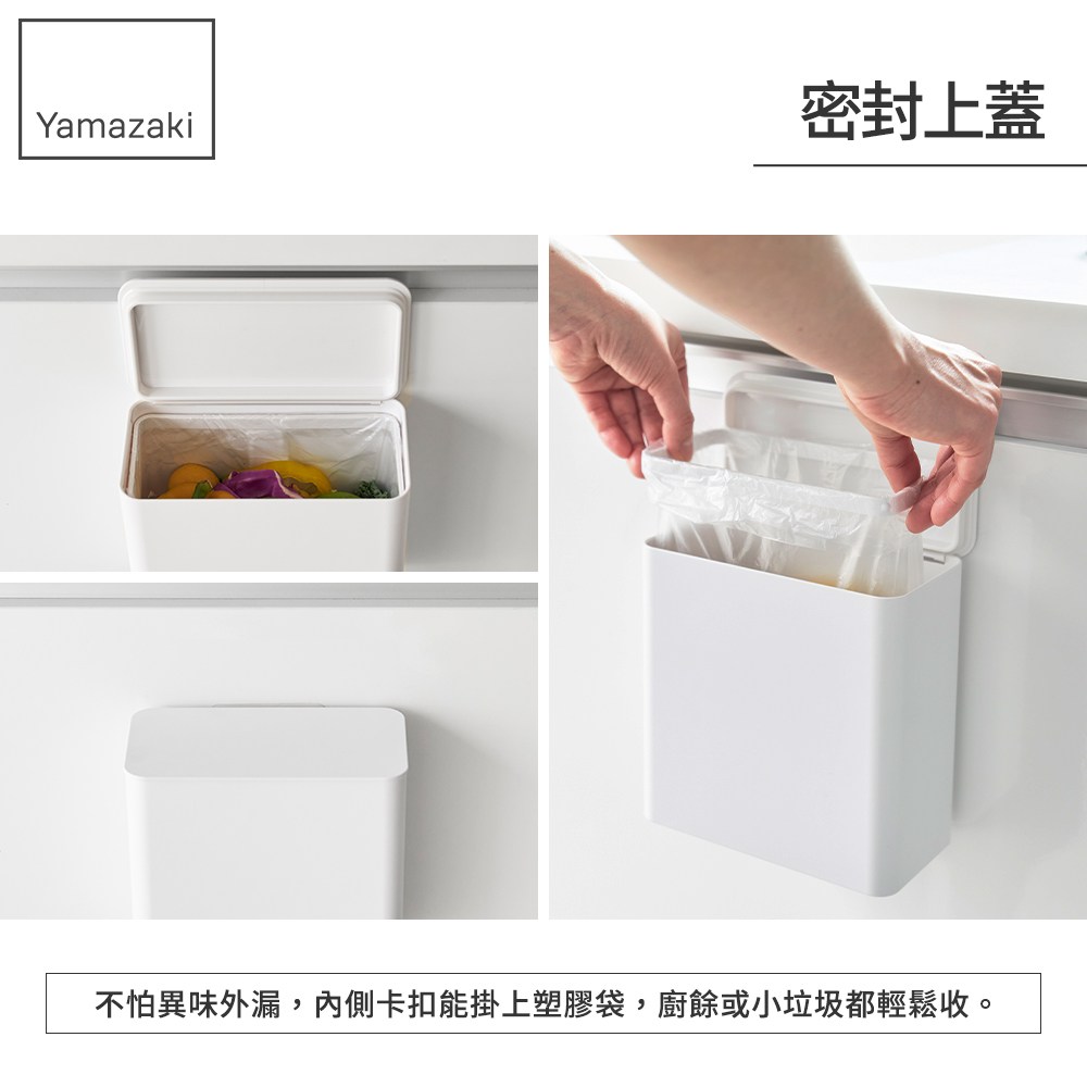 密封上蓋不怕異味外漏,內側卡扣能掛上塑膠袋,廚餘或小垃圾都輕鬆收。