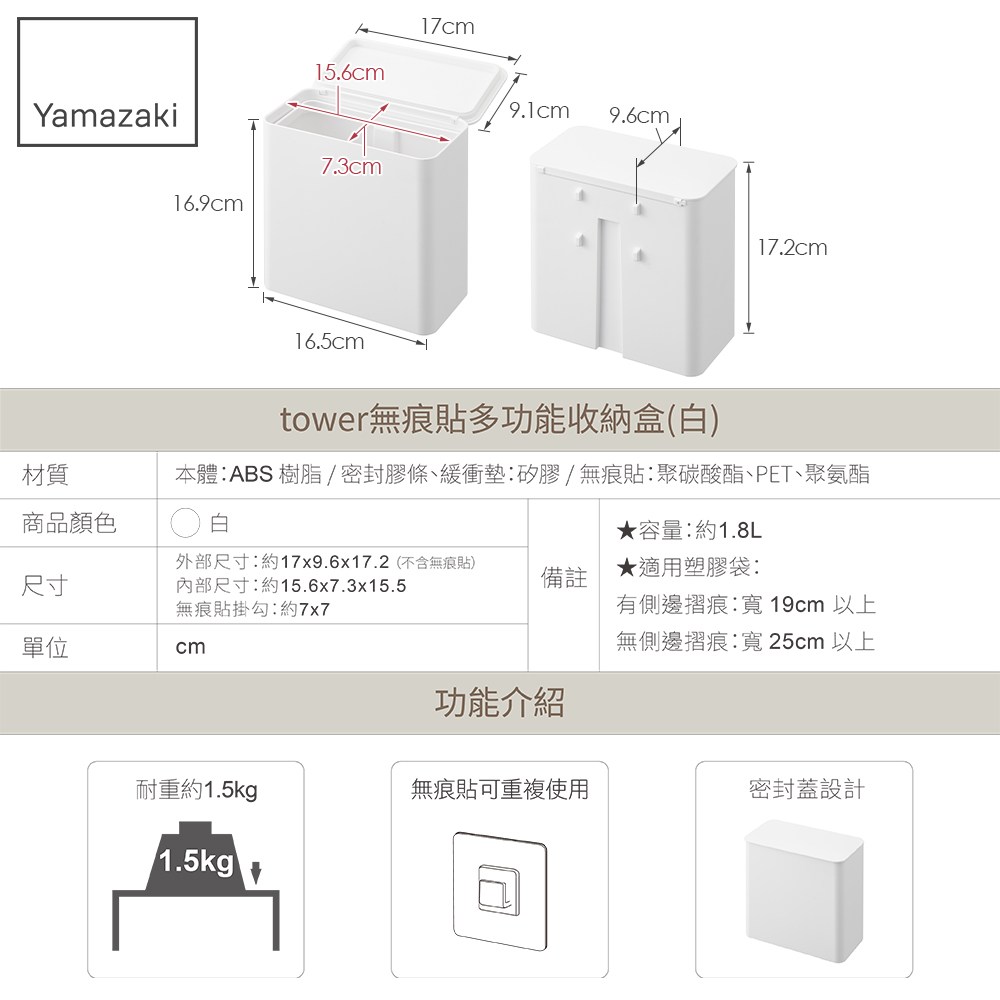 【tower無痕貼多功能收納盒】小空間必備好物!