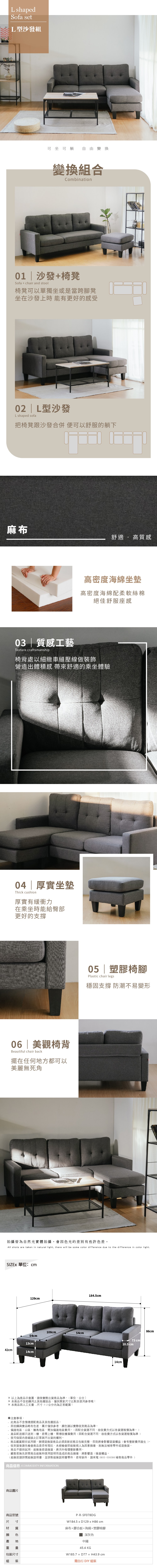 RICHOME 米亞L型沙發(腳凳左右互換) L型沙發 沙發 三人沙發 雙人沙發 麻布沙發 客廳接待區適用 SF045