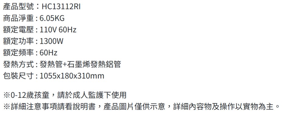 AIRMATE 艾美特 HC13112RI WIFI 石墨烯電暖器