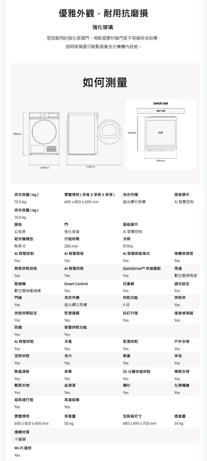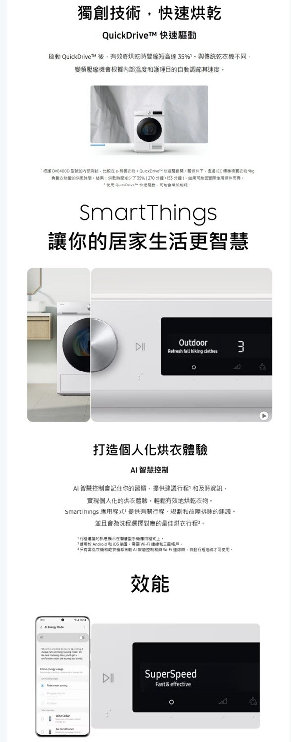 SAMSUNG 三星 10KG 智慧熱泵乾衣機 DV10DB7440GB/DV10DB7440GW 黑白