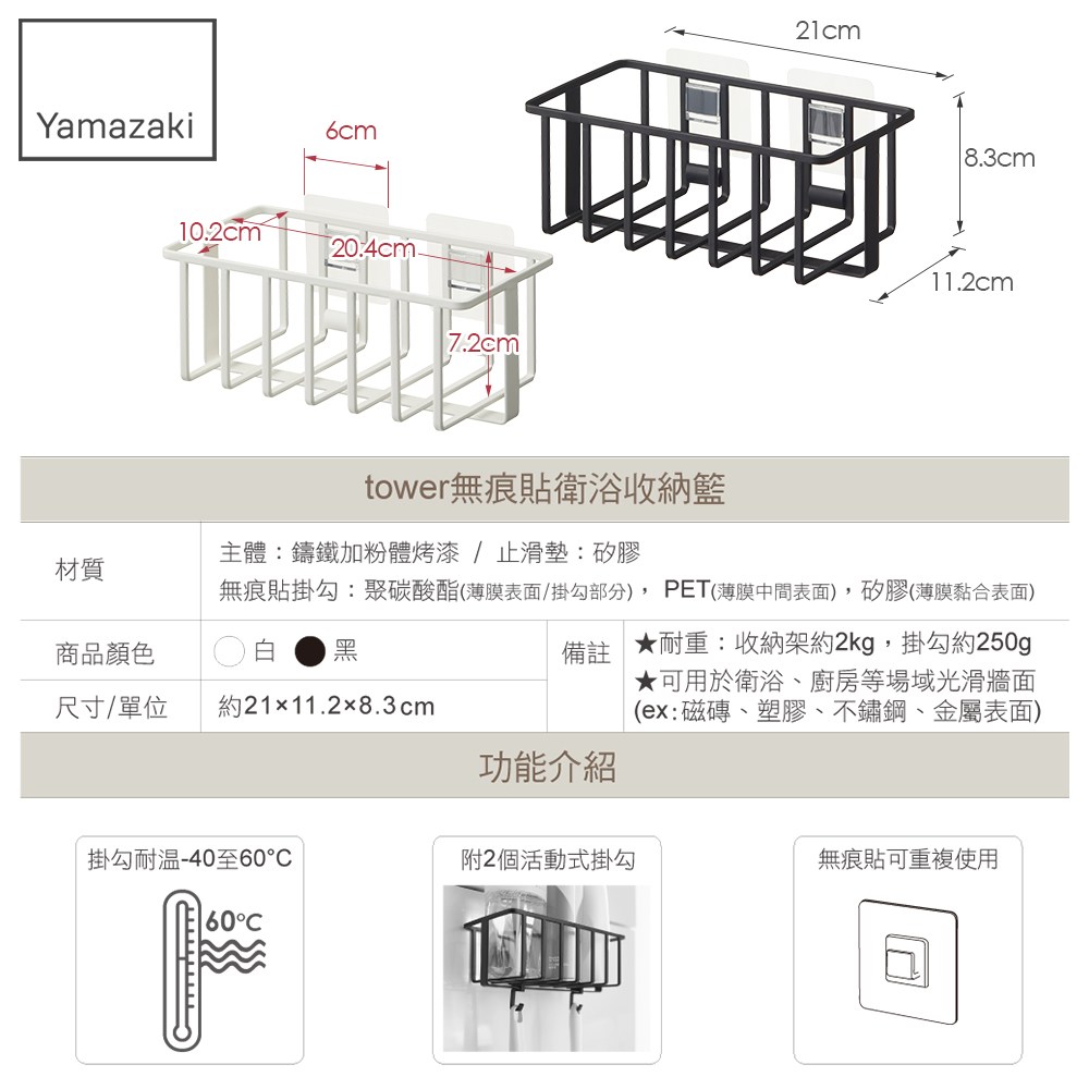 ★耐重:收納架約2kg,掛勾約250g