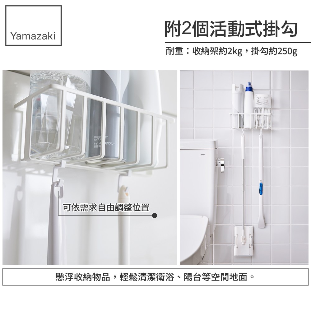 附2個活動式掛勾,可依需求自由調整位置,掃具收納不煩惱。