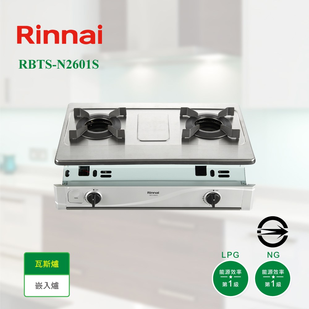 (全省安裝)林內雙口爐內焰嵌入爐不鏽鋼瓦斯爐天然氣RBTS-N2601S-NG1