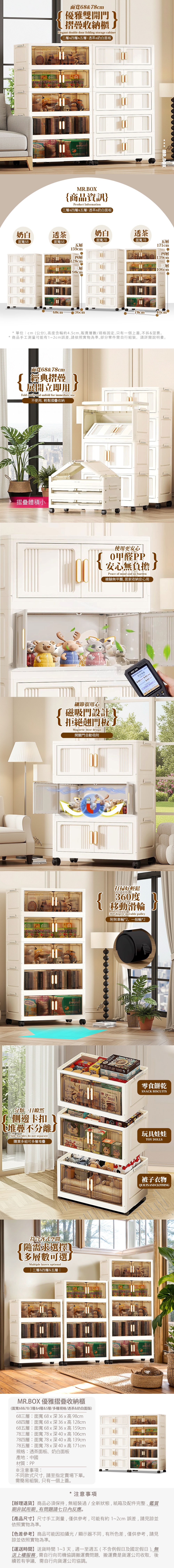【Mr.box】78大面寬優雅摺疊磁吸雙開門五層收納櫃-附滑輪78五層-透茶色面板