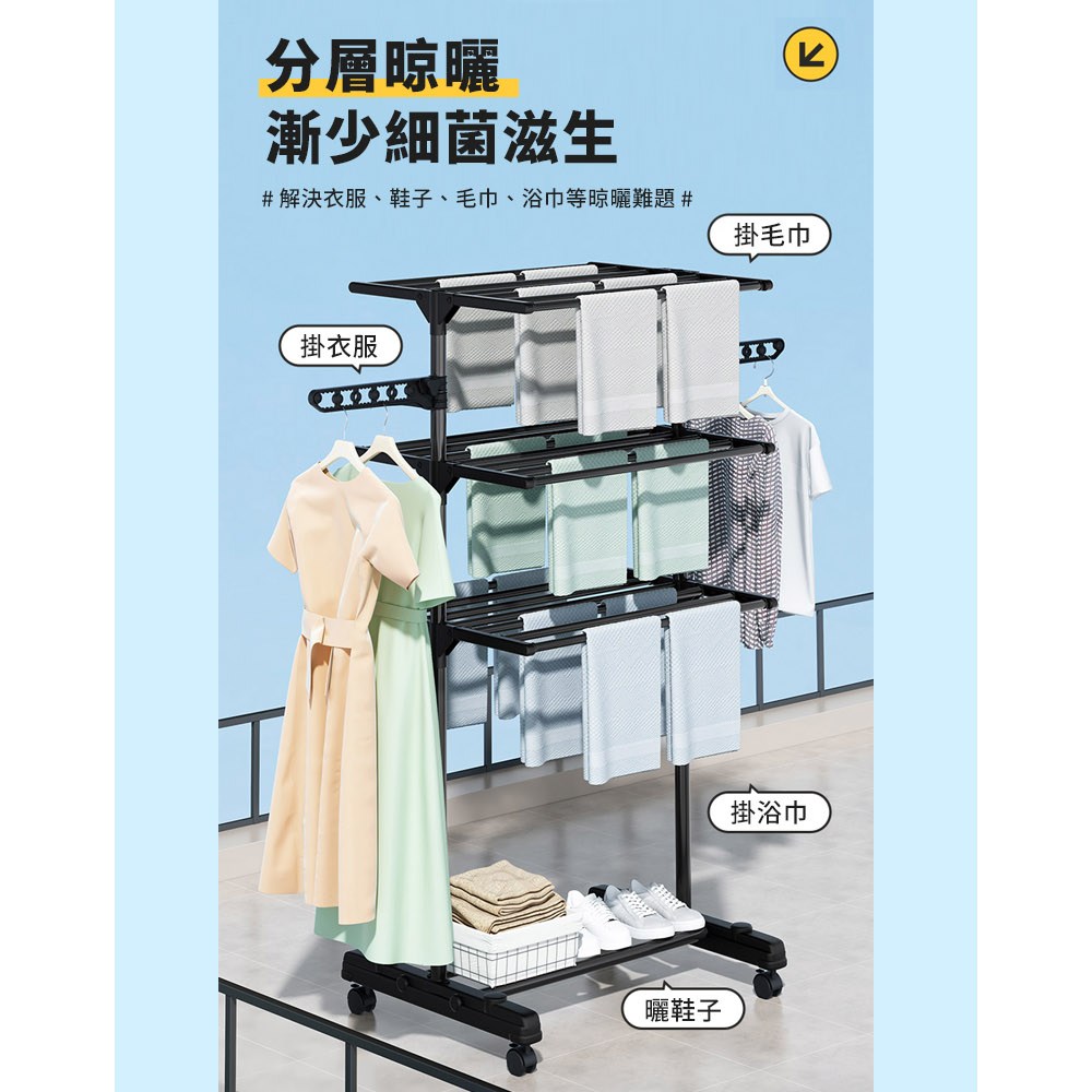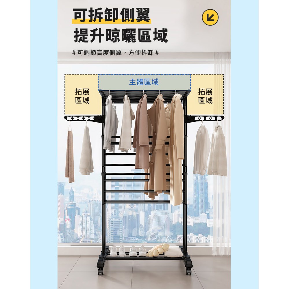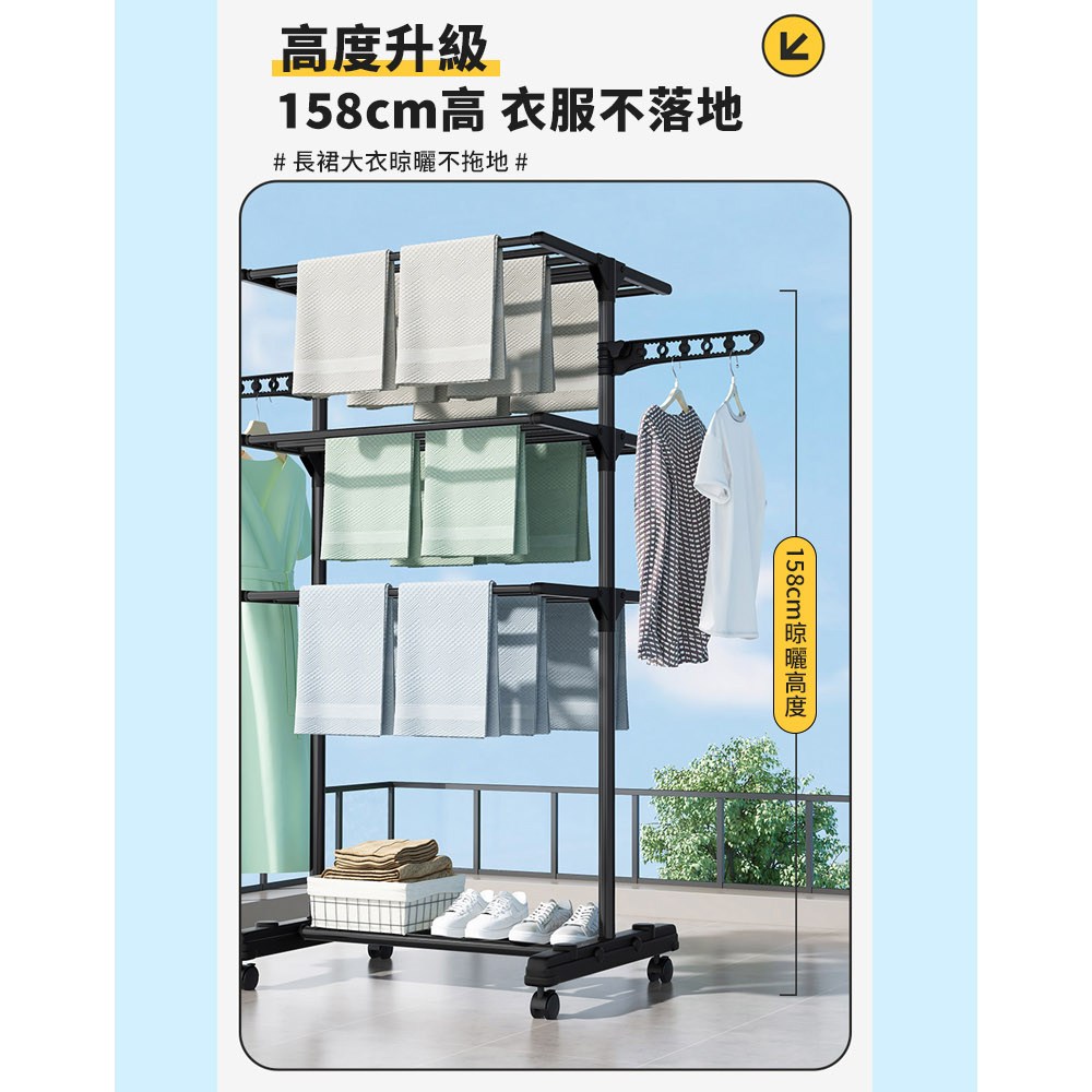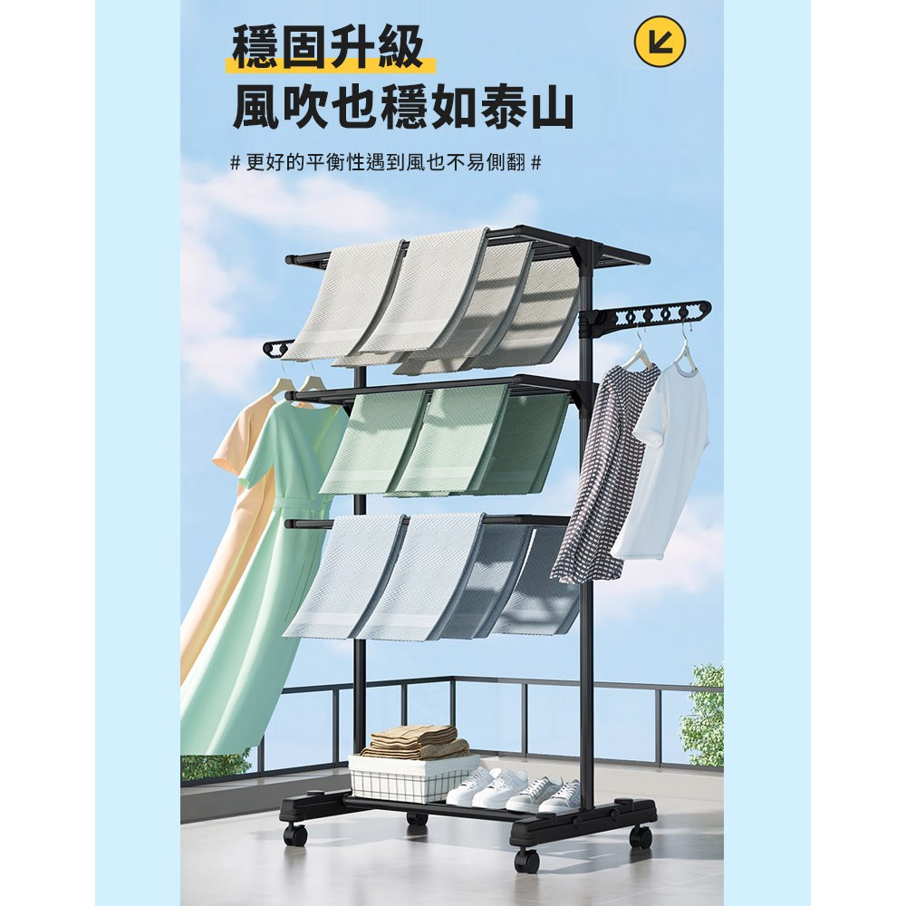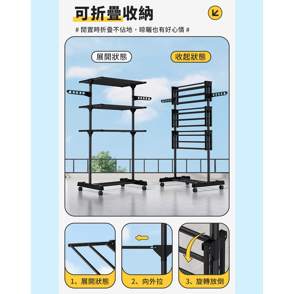 【免釘免安裝】摺疊晾衣架 落地晾衣架 陽臺晾衣架 臥室晾衣架 家用掛衣架 多功能伸縮 加厚鋼管 可移動收納 曬被子曬衣物