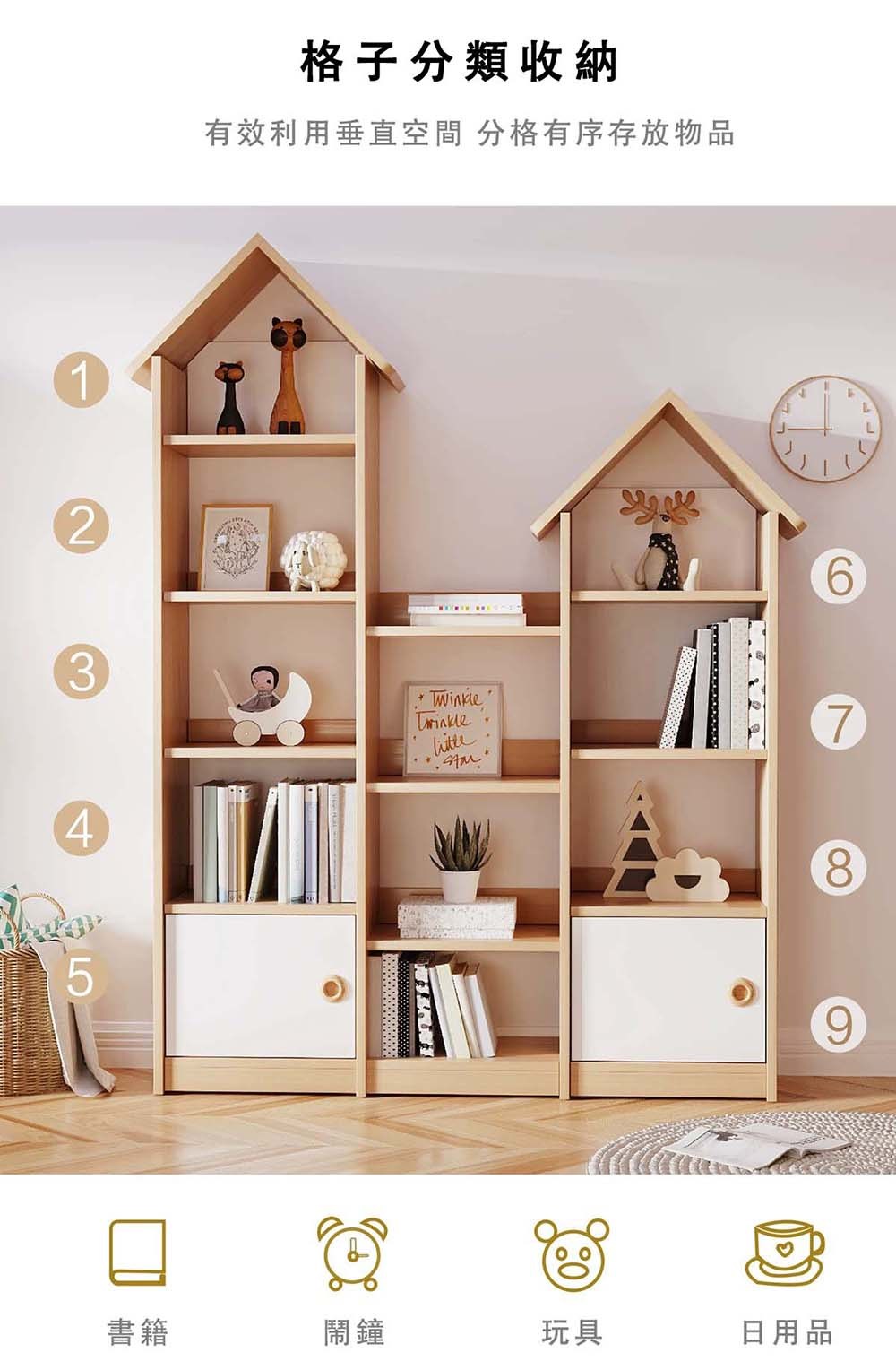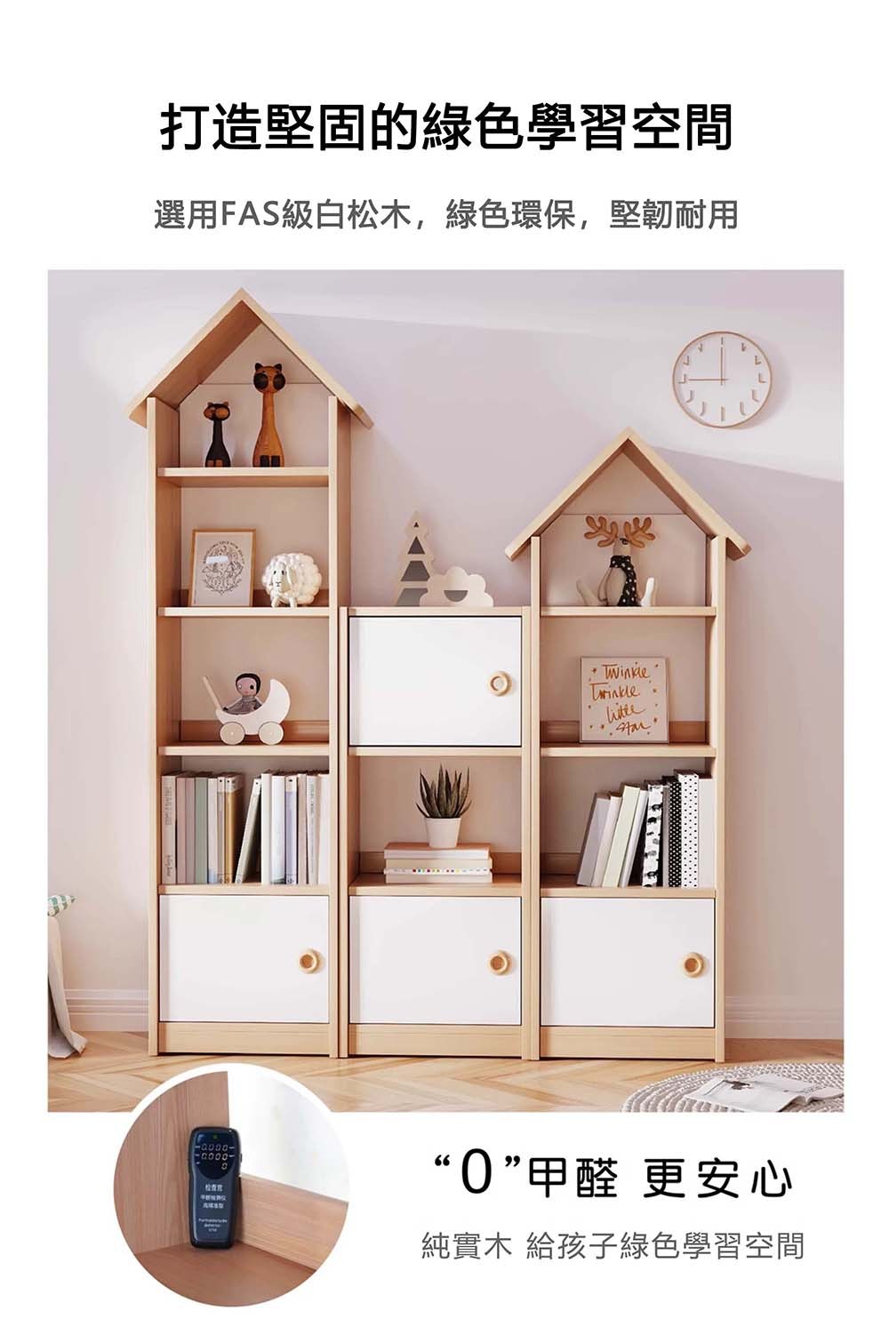 - 實木小屋造型,收納多層,培養孩子整理力