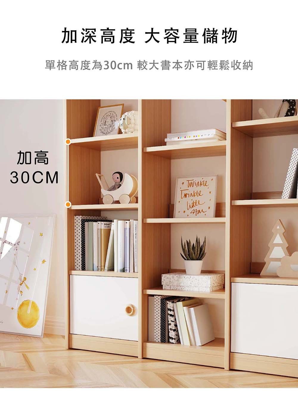 - 單格寬敞 30cm,大書輕放,收納無壓力