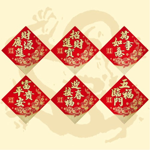 財神小舖 百福財到家 小春聯 四款 Set 1組 福祿壽喜 + 錢進我家 + 百福臨門 + 四季亨通 16.5 x 16.5cm