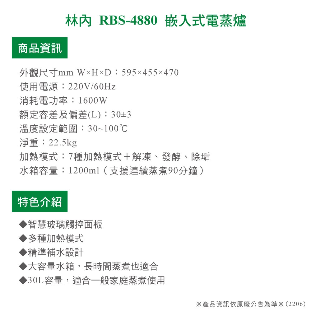 ※產品資訊依原廠公告為準※(2206B)