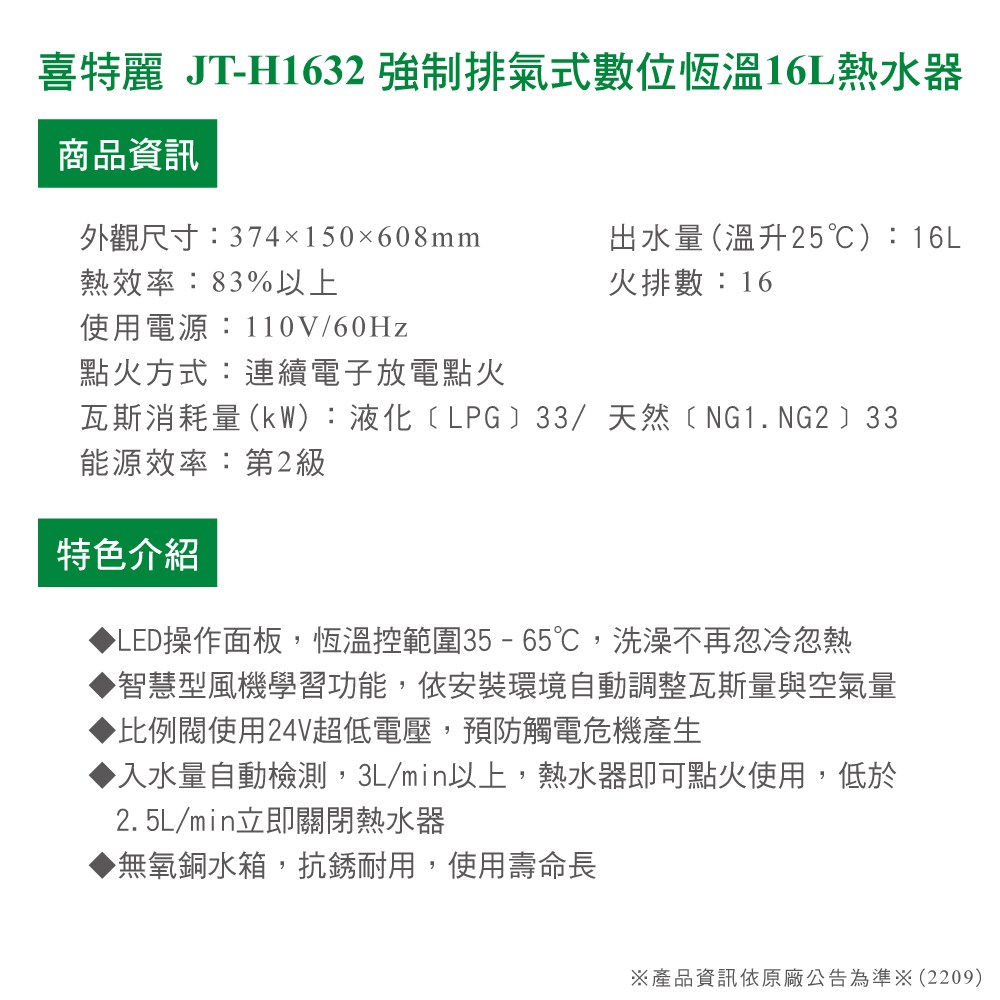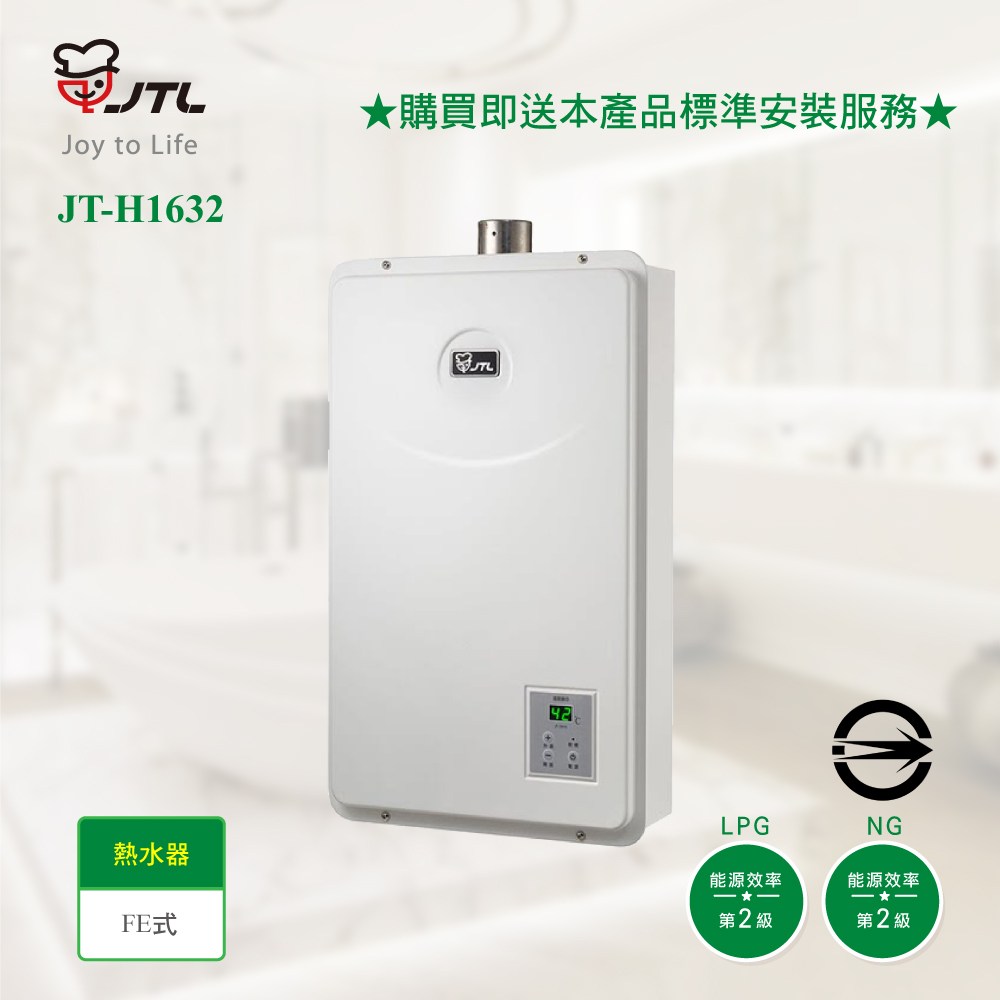 喜特麗 瓦斯熱水器 JT-H1632 LPG/FE式