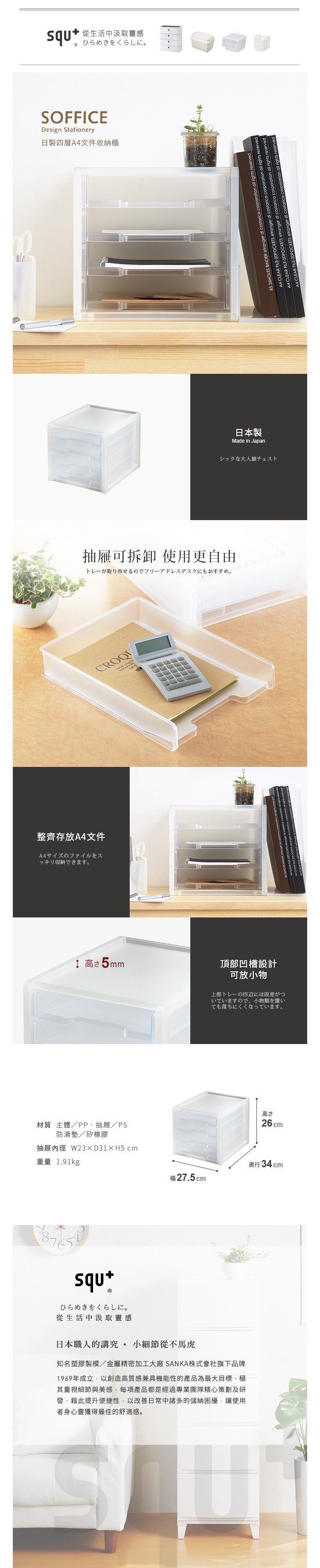 【日本squ+】SOFFICE日製四層A4文件抽屜收納架