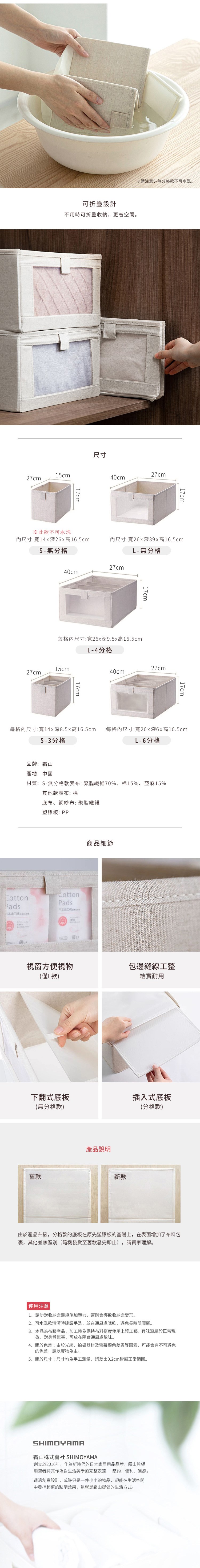 【日本霜山】4分隔布藝摺疊式分類收納盒(附透窗)-L-3入