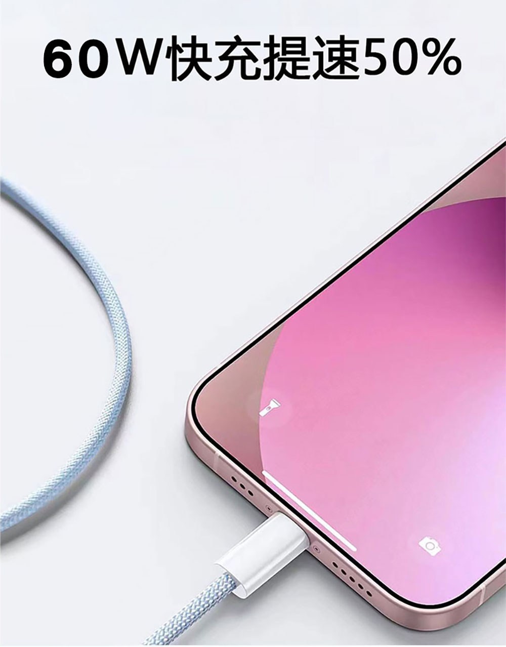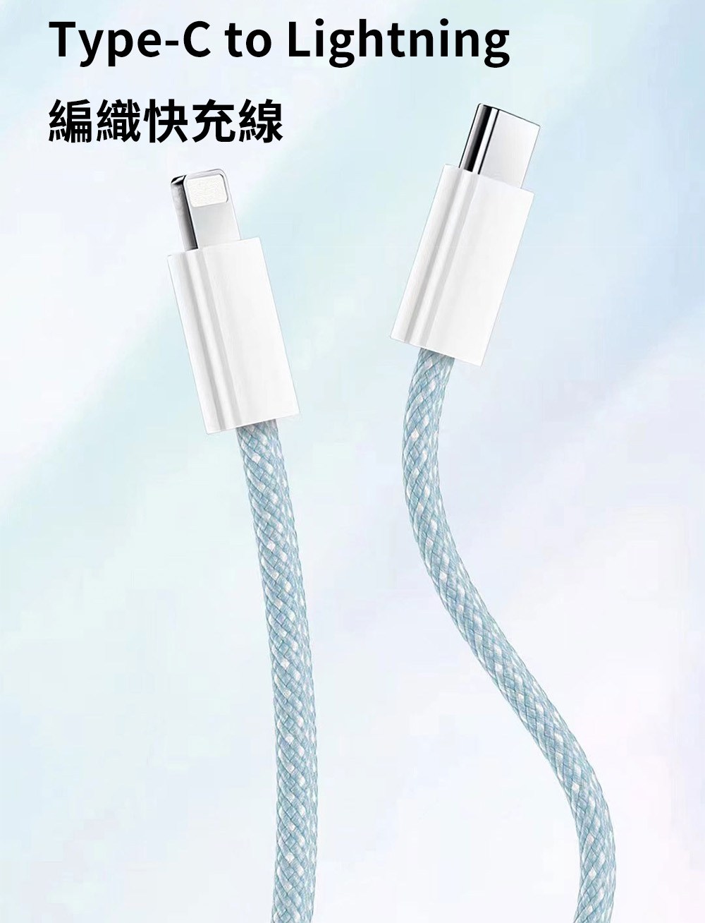Type-C-Type-C 蘋果彩色编織快充線 100cm 青綠色 1條