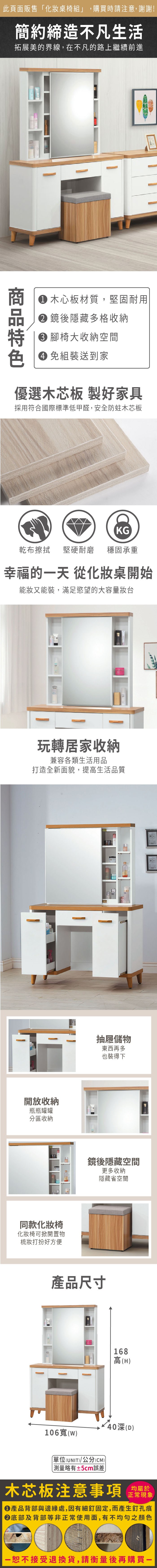 【顛覆設計】梅梅3.8尺掀鏡台+功能櫃(含椅)