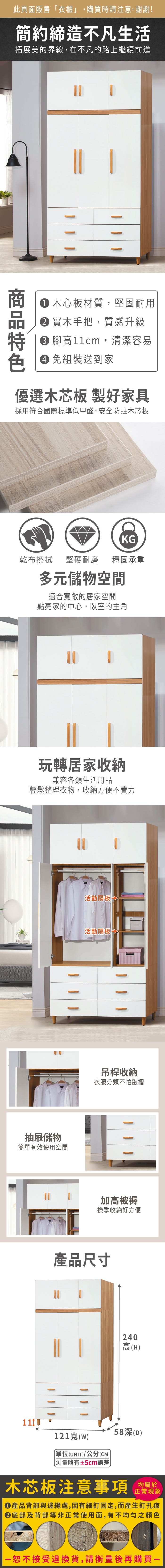 IDEA MIT凡賽4X6尺木質收納抽屜滑門衣櫃/衣櫥(3色任選)