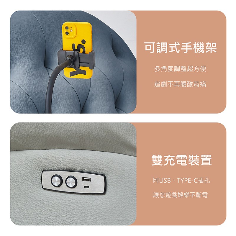 傢俱工場-杜老爺 零靠牆240CM 貓抓皮雙電動沙發/沙發躺椅 (附USB孔)淺卡其#627-10