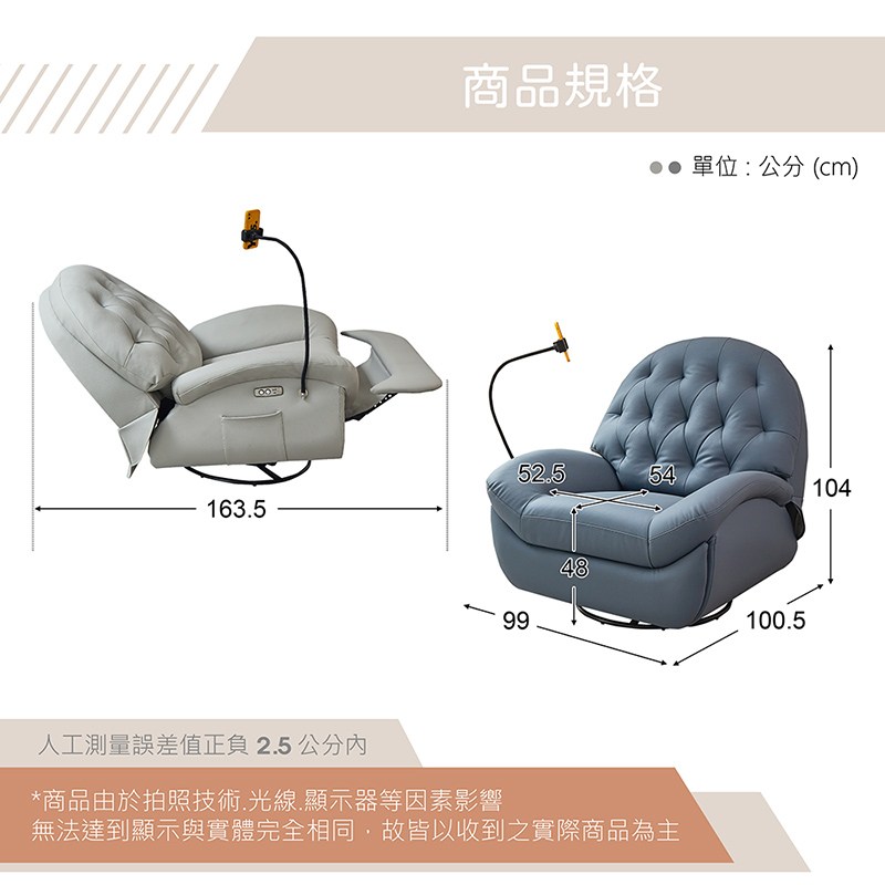 懷特舒適旋轉單人沙發