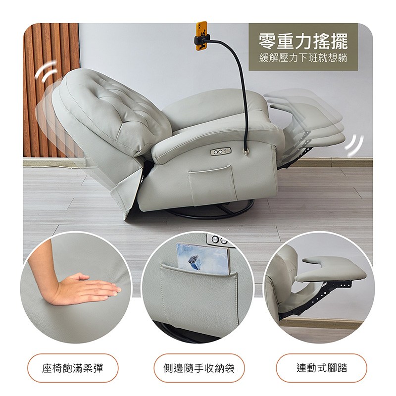 【多瓦娜】克萊薾電動單人休閒沙發-二色淺灰