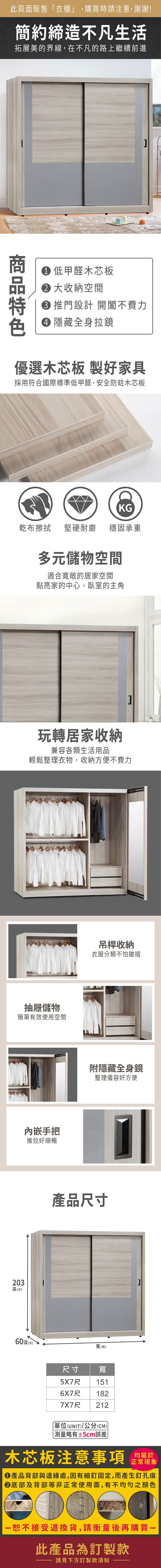 【MUNA家居】歐克推門5X7衣櫥(2057)