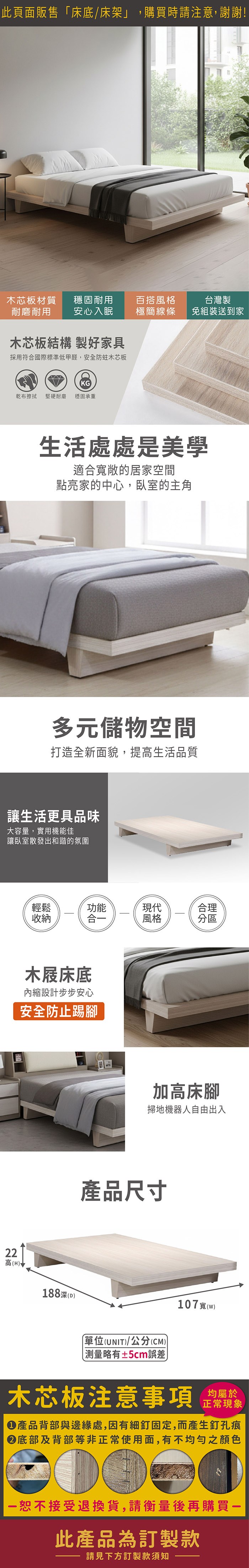 【本木】普索 北歐簡約六分木心板內縮床底-單人加大3.5尺梧桐