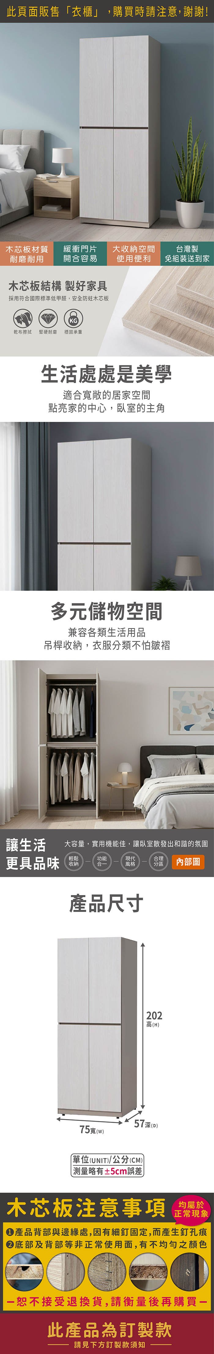 文創集 艾悠2.5尺四門內雙吊衣櫃-76x58x197cm免組